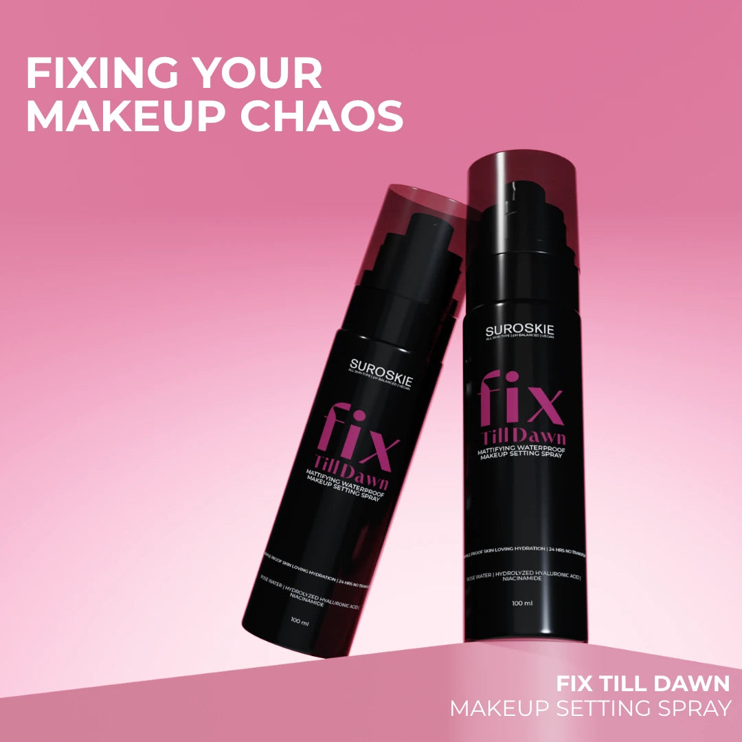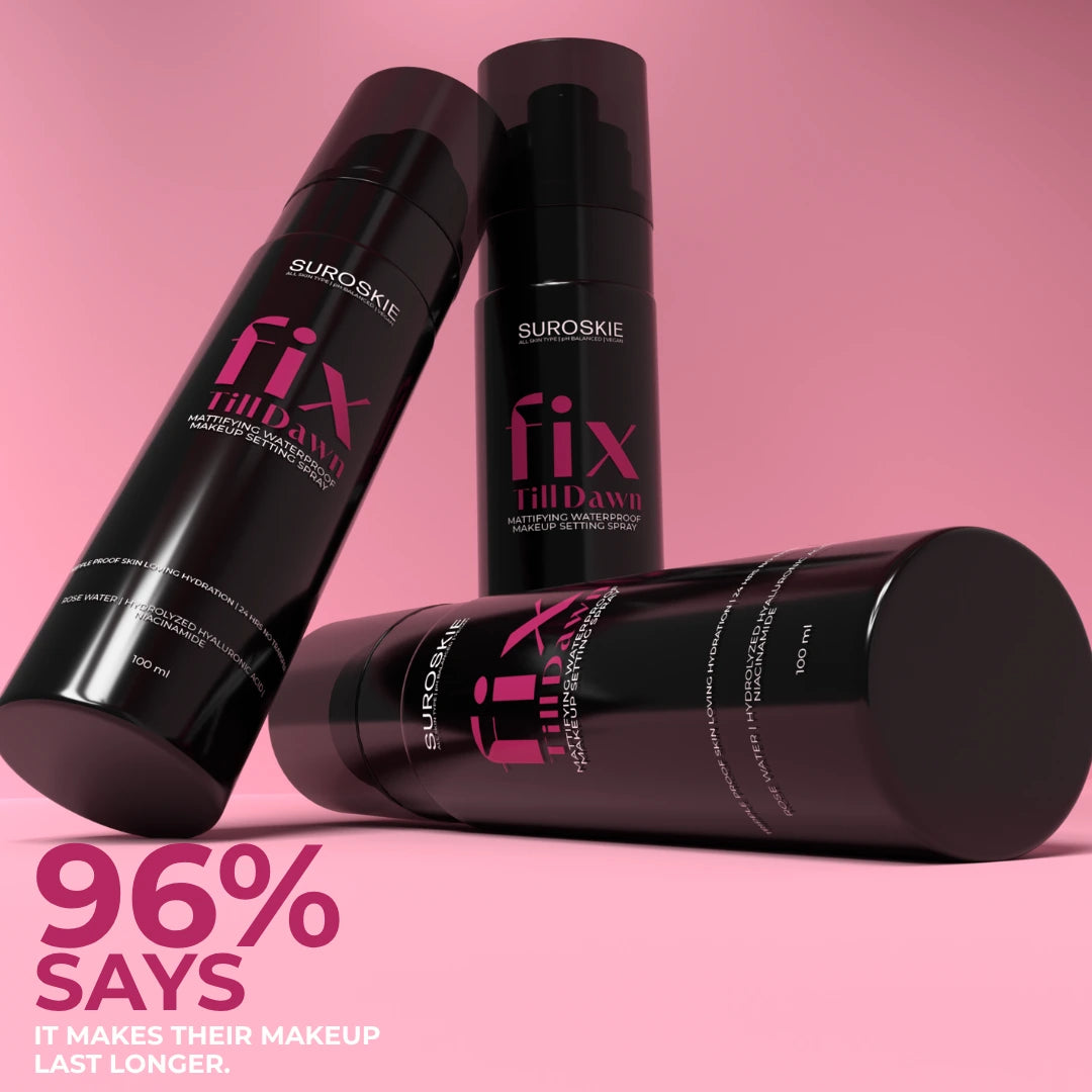 Suroskie’s Fix Till Dawn is a high-performance, 15+ hour makeup setting spray powered with a