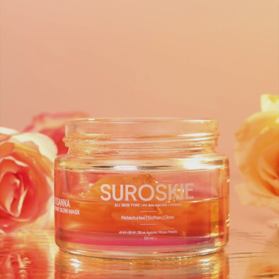 Elevate your skincare journey with Suroskie Beauty's Rosanna-Rose Instant Glow Face Mask. Click here to experience the radiance of Korean skincare innovation. Transform your complexion with the power of AHA, BHA, and the timeless beauty of rose petals face serum.